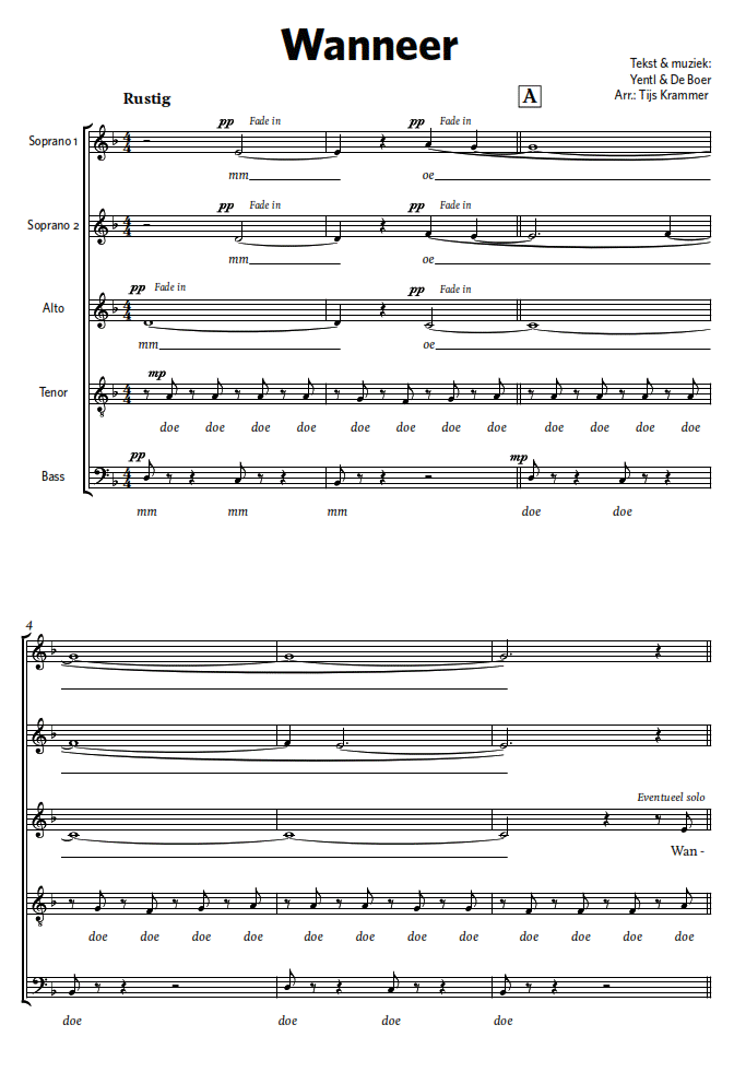 Oorspronkelijk geschreven voor de vocale mannengroep Intermezzo, nu voor gemengd koor