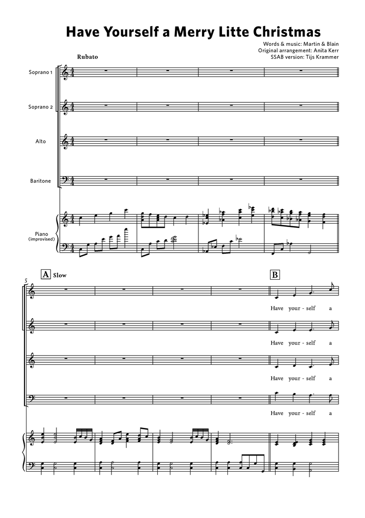 Het arrangement gezongen door The Gents, herbewerkt voor gemengd koor