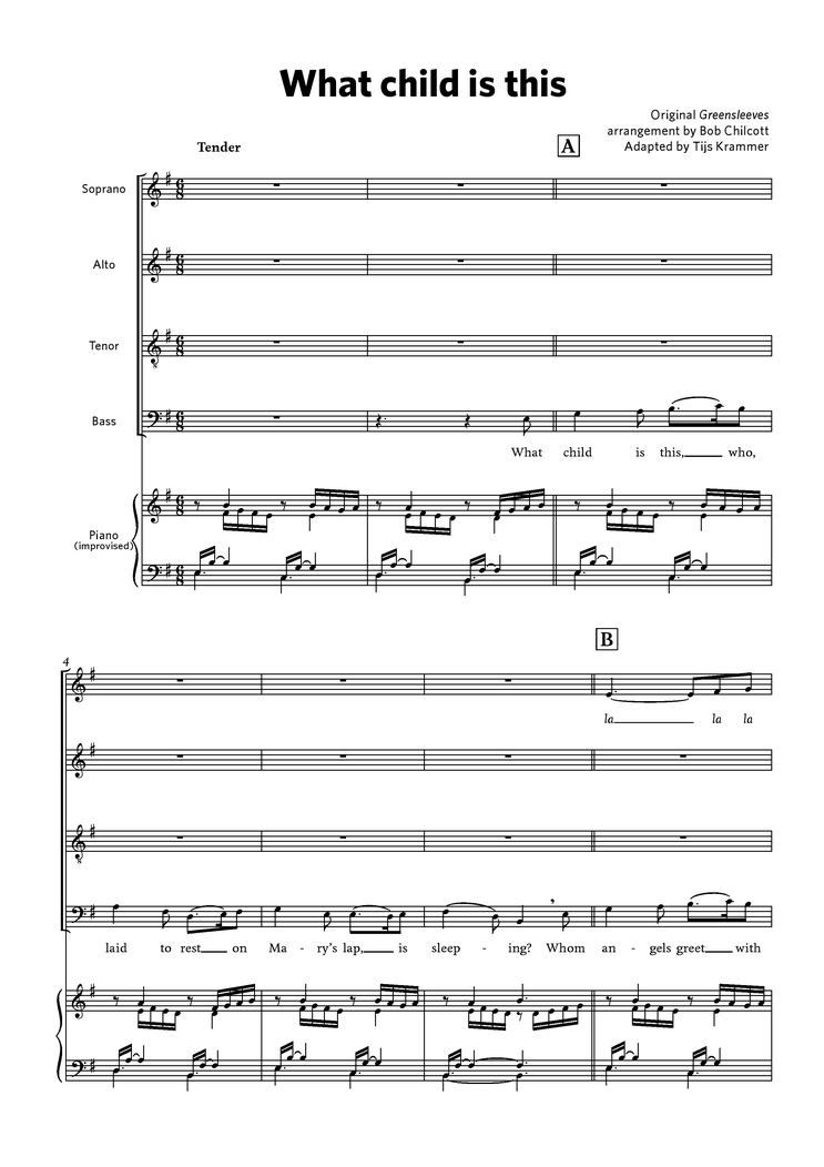 Het kerstarrangement gezongen door The Gents, herbewerkt voor gemengd koor