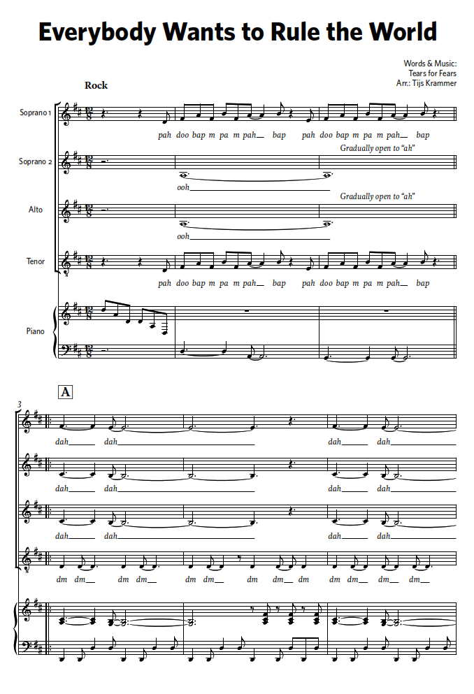 Dit arrangement volgt het origineel van Billy Joel, maar nu ligt de melodie in de alt
